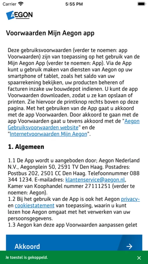 Voor het gebruik van de app zijn appvoorwaarden van toepassing . U kunt deze downloaden via www.aegon.nl/voorwaarden-app.