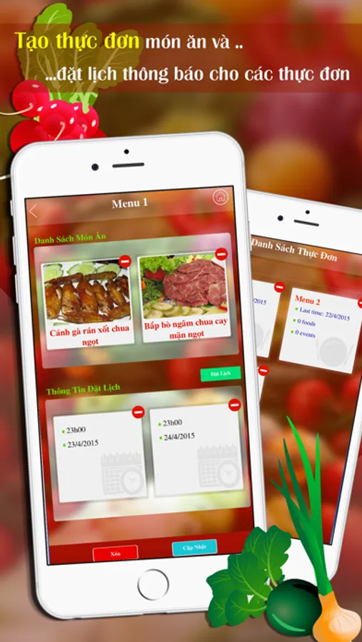 • Tạo thực đơn món ăn và đặt lịch thông báo cho các thực đơn