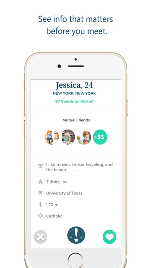 Kickoff is all about quality connections. We introduce you to single people your friends know. Meeting new people through friends is the best and most natural way to meet someone -- we just make it easier!