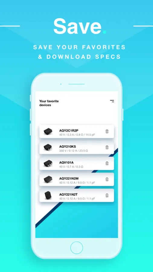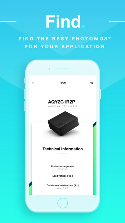 Don’t waste time, use our intuitive mobile App: just a few fingertips and you’ll get exactly the photo coupled MOSFET relay you need out of more than 400 types. Much faster than any internet search. Save your results as favorites, directly download the datasheet, or immediately request for samples.
