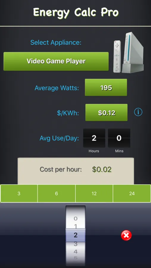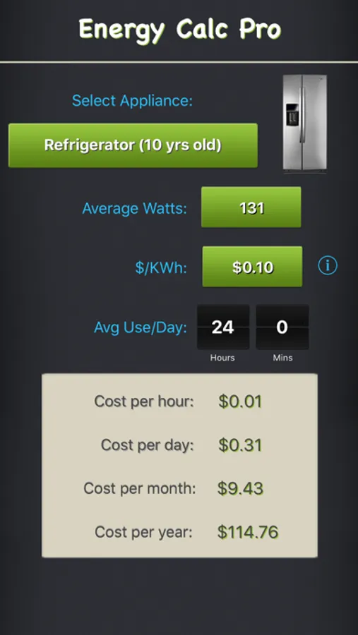 Energy Calc Pro allows you to calculate energy costs associated with everyday household appliances to see where you are spending the most on electricity.