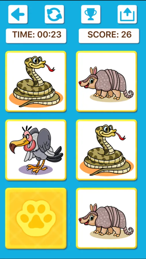 Animal Memory is a funny and adorable matching game for all ages! If you like animals, then it will enjoy you with cute and lovely drawn artwork from 5 big categories with over 100 different animals cards: