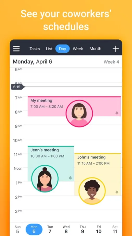 Calendars 5 illustrates your Day, Week, and Month on a small iPhone screen in the best possible way. Depending on the situation, select the view that conveniently unveils your schedule.