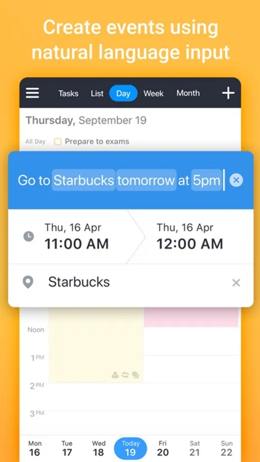 Just enter "Meet John at Starbucks on Sunday" and Calendars 5 will create the event for you.
