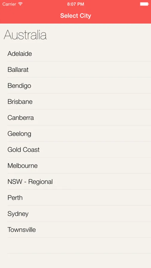 Sydney, Regional NSW, Canberra, Melbourne, Ballarat, Bendigo, Geelong, Adelaide, Perth, Brisbane, Gold coast, Townsville.