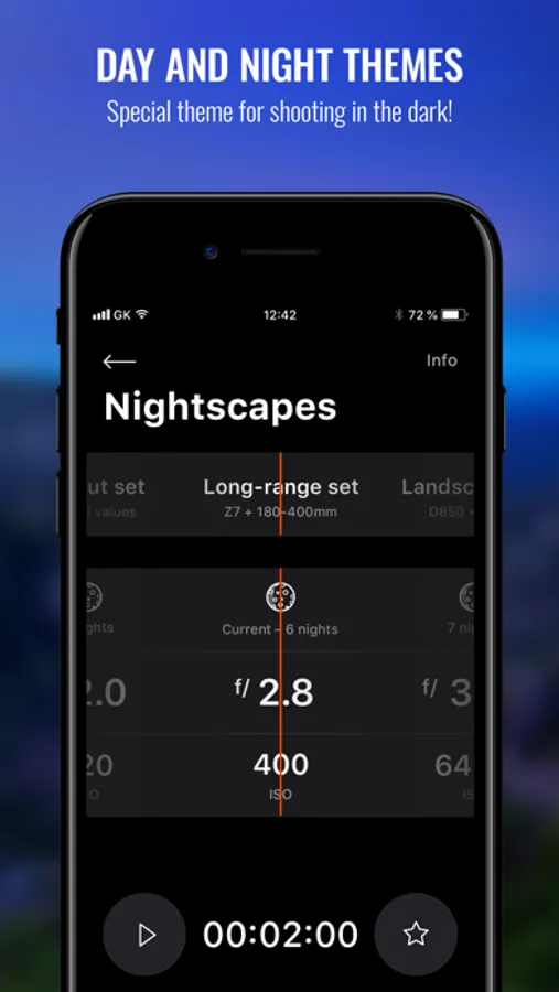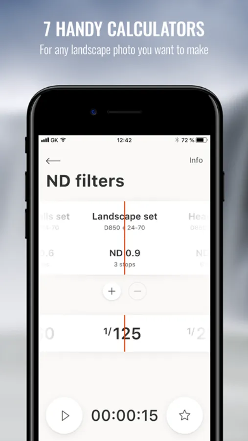 Manual exposure is a must-have for any landscape digital photographer. Forget about digging into reference tables and cheat sheets. With this set of the most important calculators, simply select your shooting parameters, and the app will do the rest for you!
