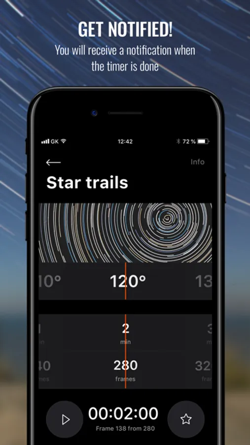 • Built-in timer and notifications. Don't be afraid to close the app when the exposure time is long - you will be notified when the timer expires. You can always check how much time is left with our Home screen widget or Apple Watch app.