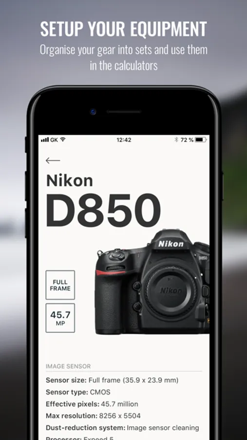 • Items info cards. Forgot the filter thread size of your lens? Don't worry, you can always check it in your sets details.