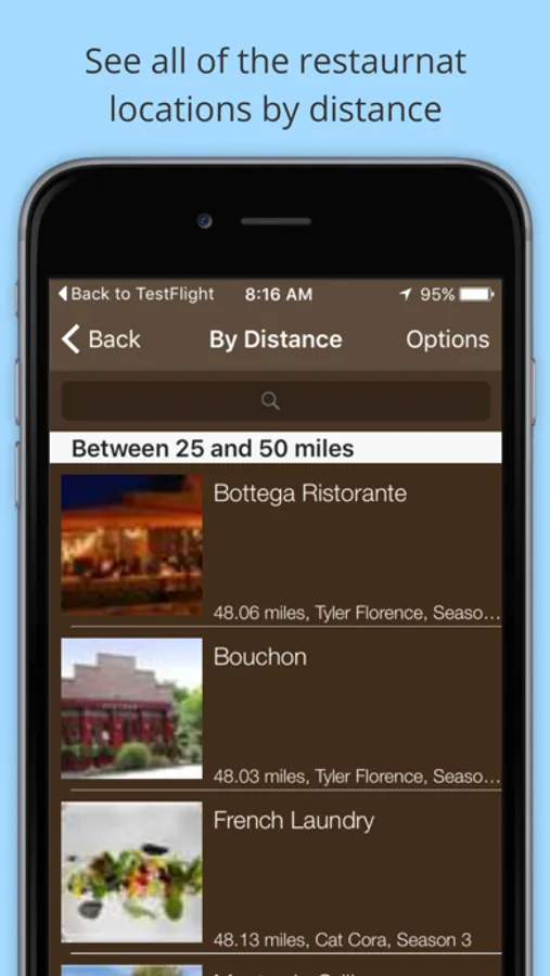 We've collected all the restaurants from all six season, and as a bonus, we have them organized by chef and by season. We even have a summary of all the chefs who've made appearances on the show.