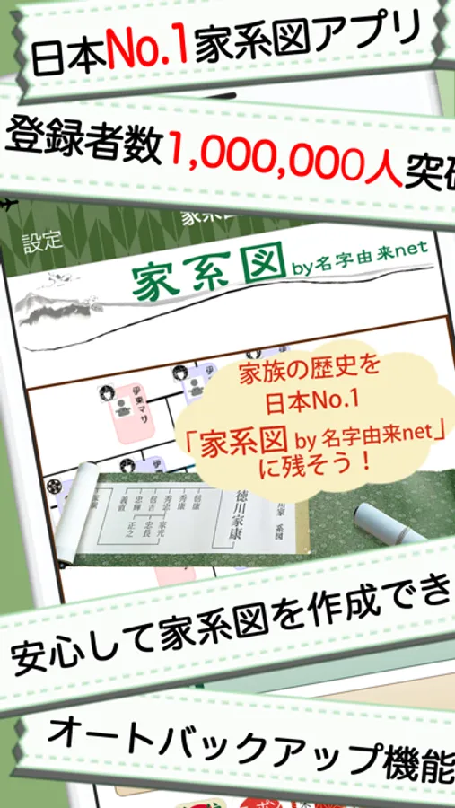 登録数1,000,000人突破!!日本最大の家系図アプリ