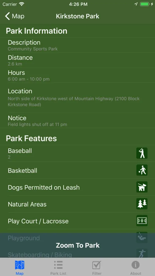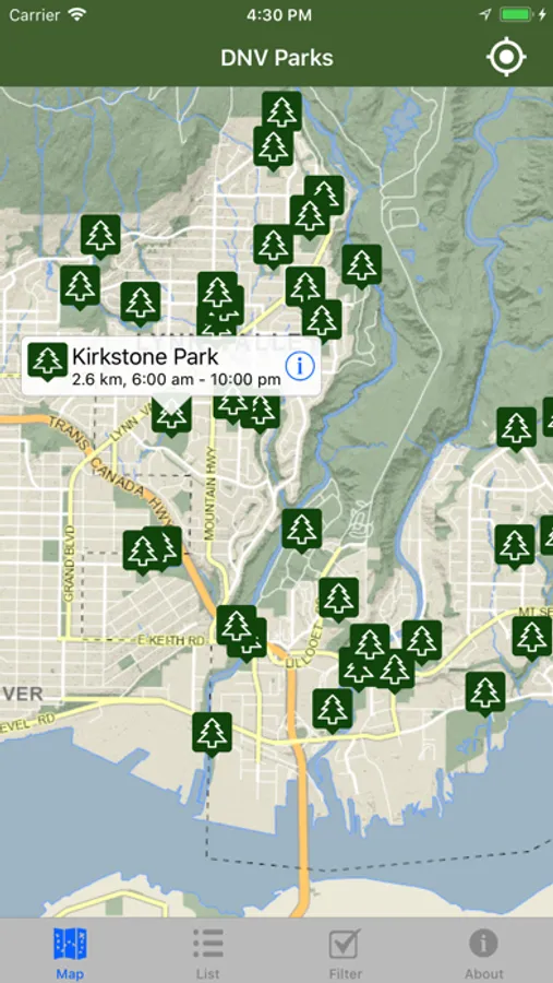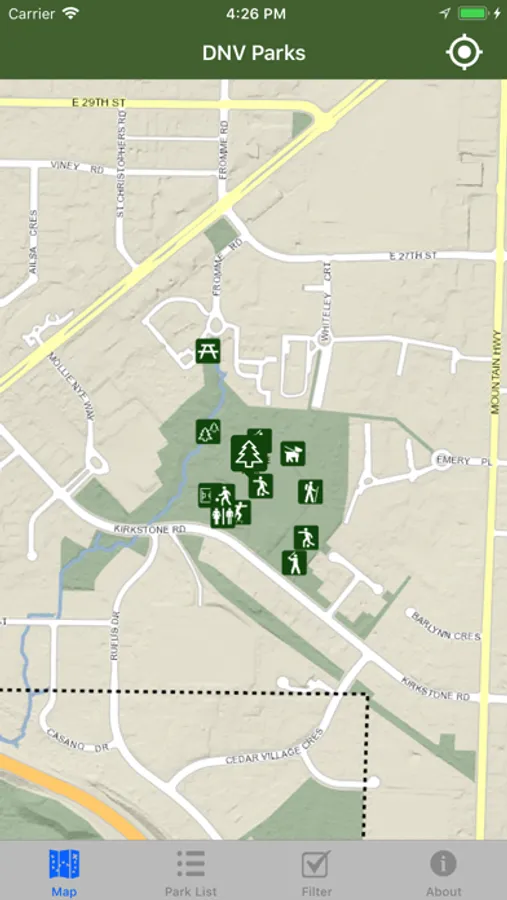 This highly customizable app provides a wealth of parks-related information at your fingertips. Whether you’re looking for a park with a concession or one with playground equipment the DNV Parks App has got you covered. Review District parks in an alphabetized list, or view the interactive map with clickable pinpoint location finders. Click on a particular park on the map to review its features including, a brief description of the park, its hours, location, and more!