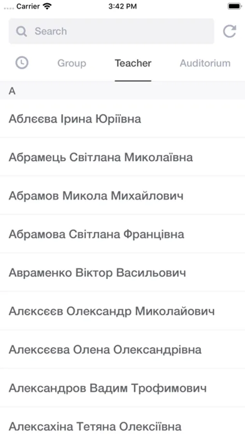Schedule for all professors, groups and auditoriums in one place.