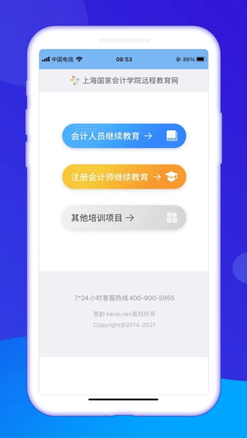 “会计继教” 会计人员继续教育是上海国家会计学院远程教育网推出的,旨在方便广大会计人员参加继续教育培训的客户端。