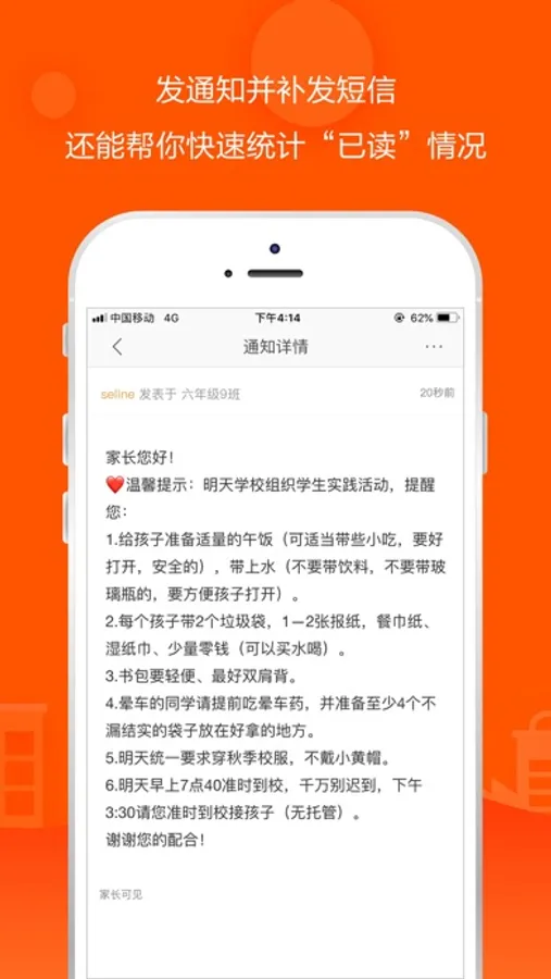 receiving school’s notice, homework, grades anywhere anytime, real-time knowing children’s status at school;