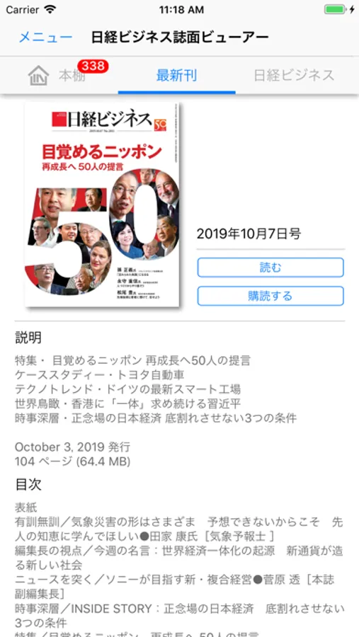 ■「日経ビジネス誌面ビューアー」では、「日経ビジネス」の全ての記事を紙の雑誌のレイアウトそのままに、iPad、iPhoneでご覧いただけます。最新の経済、政治、社会情勢を、雑誌らしい切り口で厳選して平日金曜日に最新号をお届けします。