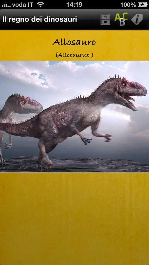 Per ogni dinosauro è disponibile una accurata descrizione e una scheda tecnica con i dettagli sulle dimensioni, sul peso e sulle solo abitudini alimentari.