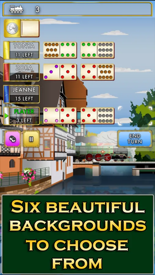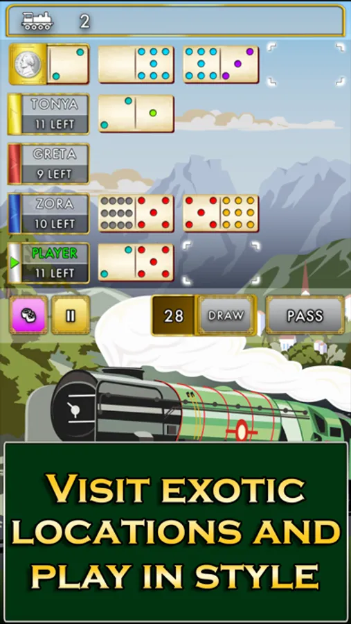 All aboard the mystic Orient Express for dominoes! From the makers of Mexican Train Dominoes Gold and Mexican Train Dominoes Classic, comes both a beautiful journey and game. Be dazzled by the touch-screen optimized interface, slick gameplay, and sharp graphics, and above all, relax and have fun with beautiful vistas!