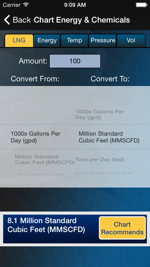 This app is to provide a quick conversion tool between the most frequently used capacity measurements in the burgeoning LNG liquefaction and natural gas processing industries. It is a useful tool for engineers of all disciplines; process, mechanical, project, as well as purchasing and sales professionals and other stakeholders in the aforementioned industries. With each LNG calculation the app offers the user the choice to find out more about the optimum liquefaction plant solution recommended by Chart. The app also includes conversions for the most frequently used measurements of Energy, Temperature, Pressure and Volume so that users have all the conversion tools they require in one place.