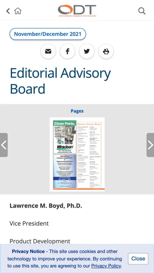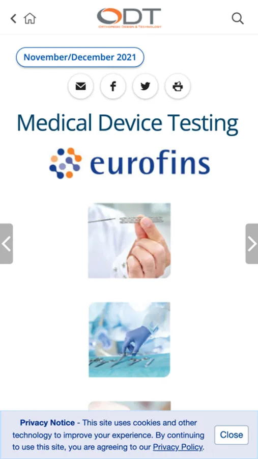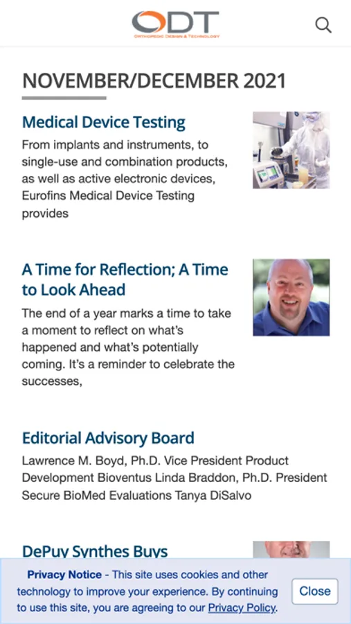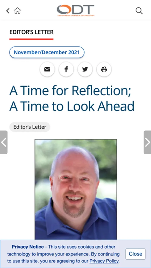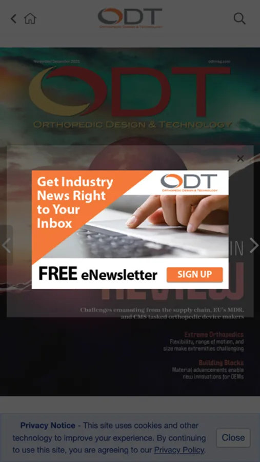 Orthopedic Design & Technology continues to be recognized as an industry-leading publication, widely recognized for its in-depth, high-quality coverage of the specialized field of orthopedic product development and manufacturing. With each issue, ODT offers readers comprehensive feature articles, industry news, trends and up-to-date market data on the ever-evolving orthopedic sector. Regular departments and columns provide must-read information on regulatory and legal issues, design trends, best business practices, manufacturing efficiencies, new technology developments, and much more. With more than 7,500 subscribers, every edition reaches key decision makers who look to ODT as their No. 1 source for information.