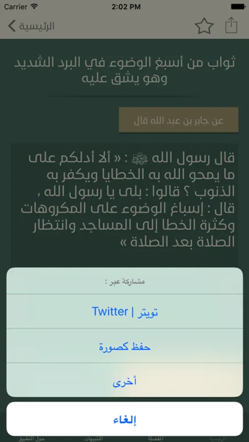 • إمكانية مشاركة الاحاديث كصورة.