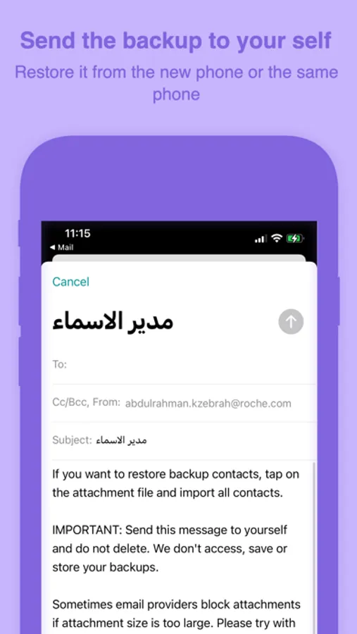 Please note that you need to have a email configure on your phone in order to backup and send the backup to your self and restore the backup