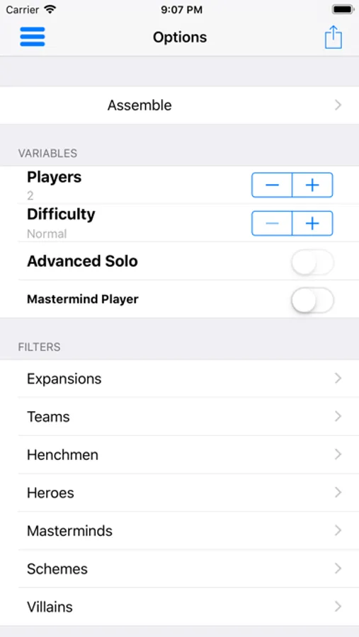 • Randomly selects schemes, mastermind, henchmen, villains and heroes.