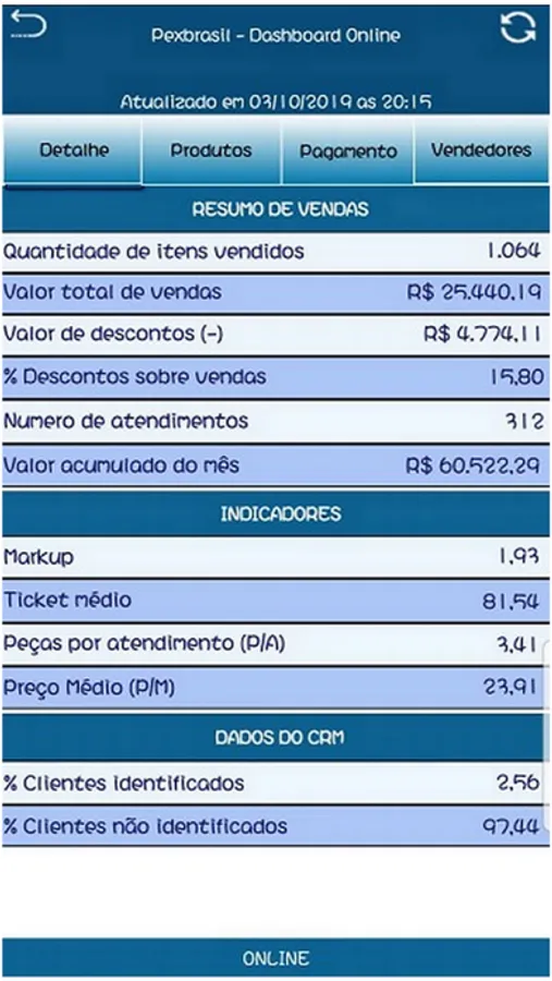 Programa produzido para que os clientes da PexBrasil possam acessar as vendas de suas lojas de forma online, com gráficos e indicadores fundamentais para a análise de suas lojas