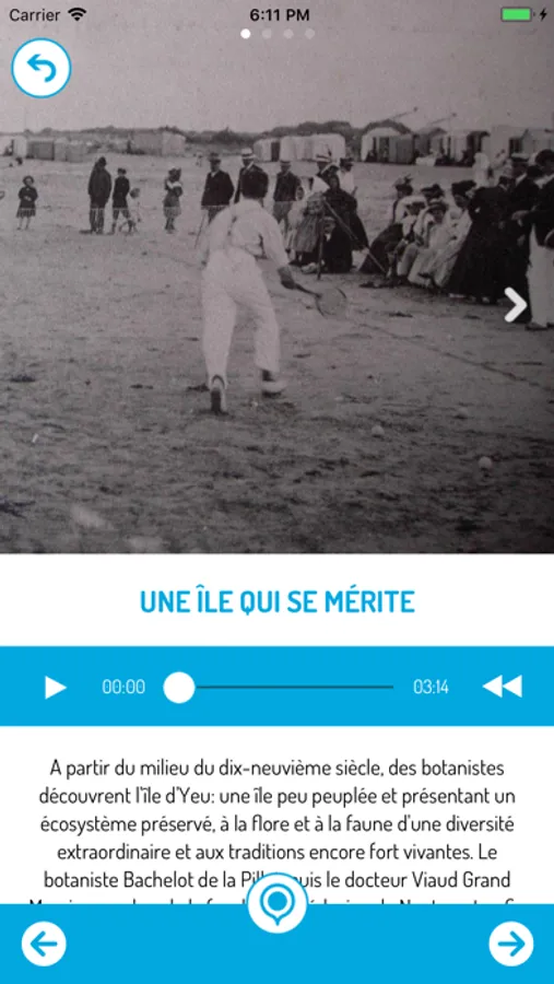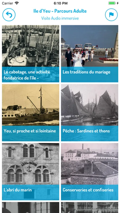 L’application Y-balade vous permettra de revivre les grandes heures de l’Ile d’Yeu grâce à des scènes jouées par près de vingt comédiens. Couvrant les principaux points de l’ile, vous pouvez utiliser cette application en téléchargeant au préalable les contenus et en démarrant la visite sans contrainte de réseau.