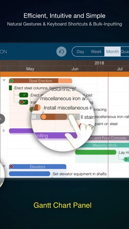 Project management with natural gestures on the Gantt chart designed for small touchscreens. Sync projects across multiple devices, and share projects in teams AND supports Microsoft Project Plan integration.