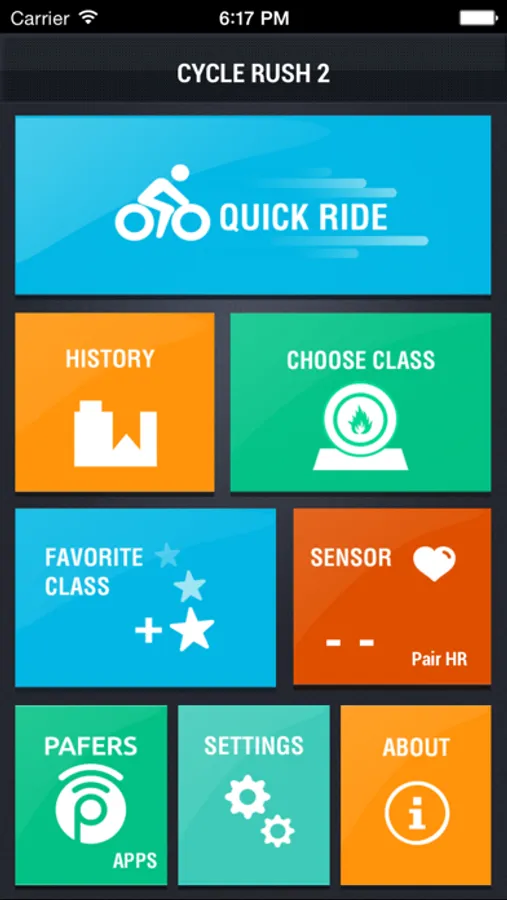 Cycle Rush is compatible with Bluetooth Smart accessories, including heart rate sensors and speed/cadence sensors and will display the sensors’ data in the app.