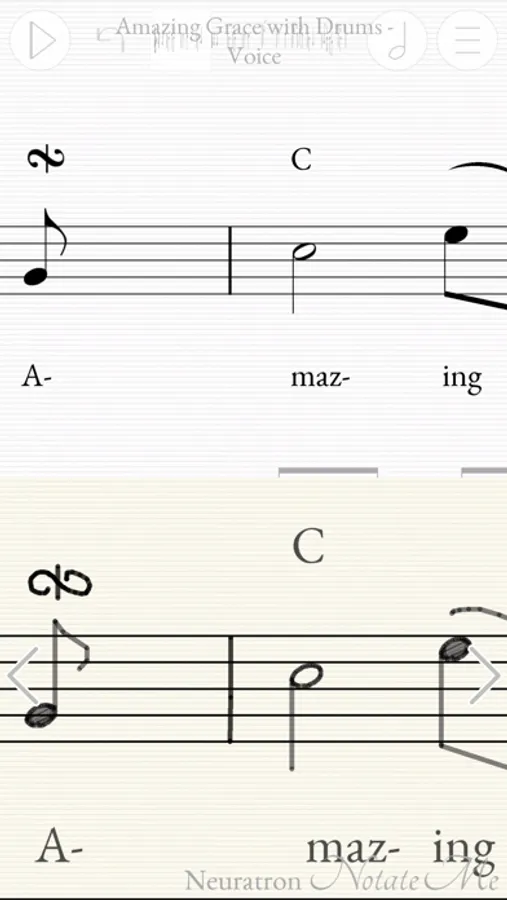 - PhotoScore Add-In (In-App Purchase): Take photos of printed sheet music with your device's camera, so you can play back and edit them with NotateMe! Recognizes 5-line staves and most markings including chords, flags, beams, rests, accidentals, articulation marks, clefs, key signatures, time signatures, tuplets, slurs, ties, hairpins and text including lyrics, dynamics and instrument names. Note: Requires 5MP camera & 1 GB RAM - so not for iPad 2, iPhone 4S, iPad Mini (1st gen) or earlier.