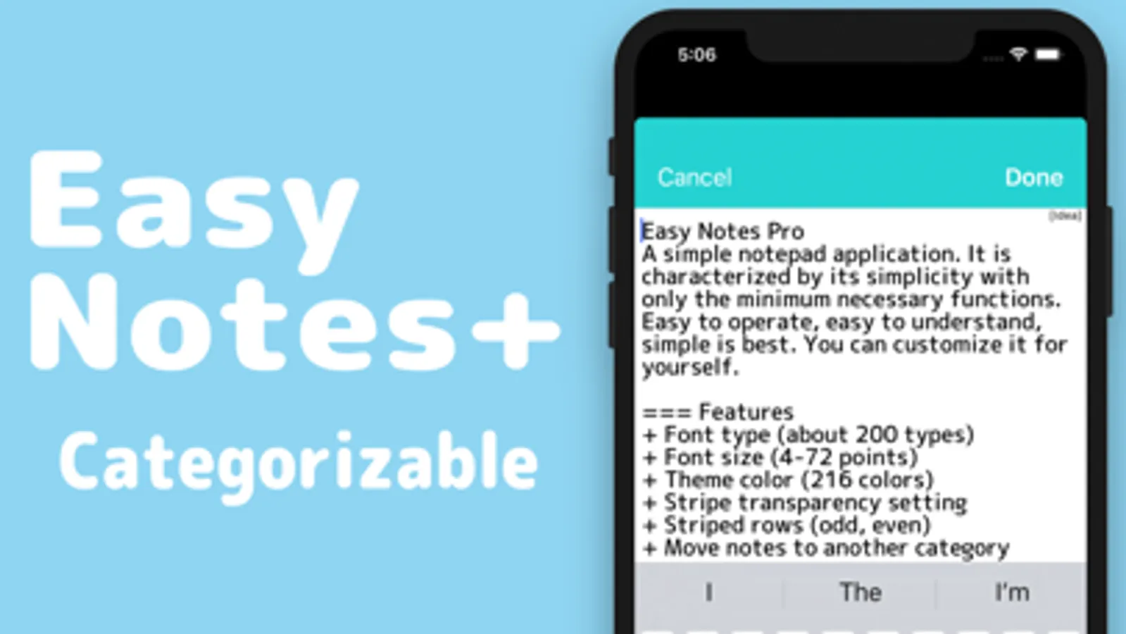 - Sortable notes in category. (In-app purchase)