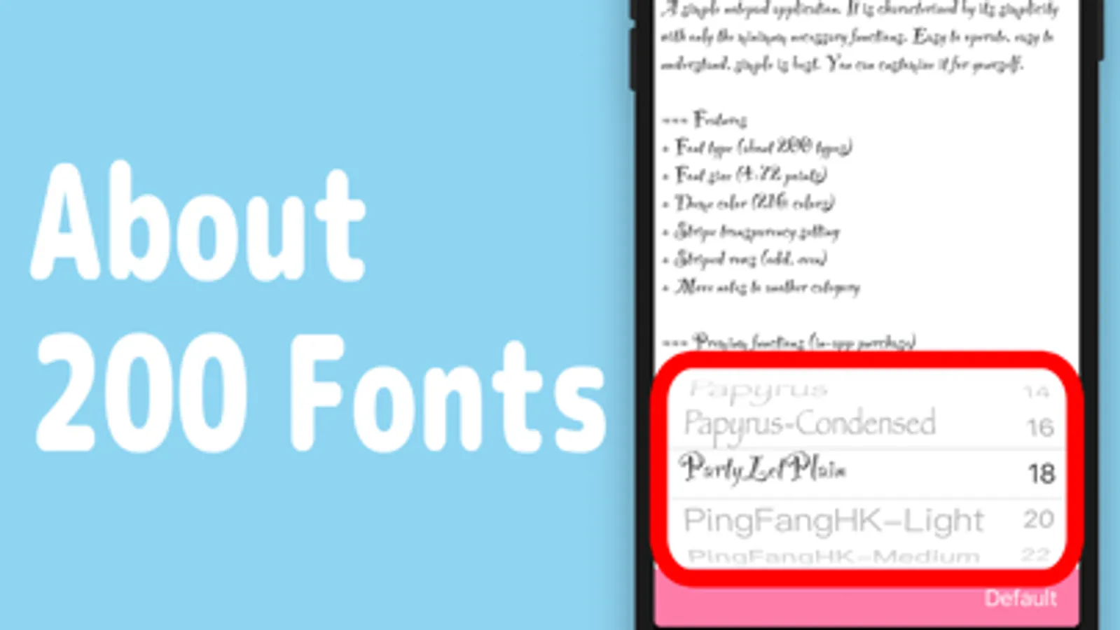 The App has 200 Fonts and 4 - 72points