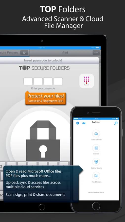 Scanning personal or sensitive documents? Would you rather keep the information safe? We’ve made security a priority, which is why Top Folders has passcode and Touch ID (Pro) support to ensure that the information you want to keep safe stays that way.