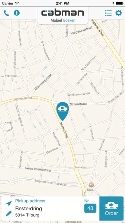 We can also take care of your very own reservations app that customers can download in the App Store. They can then reserve a taxi with their phone, with a form in your corporate identity. Your agenda packet directly receives the trip requests.