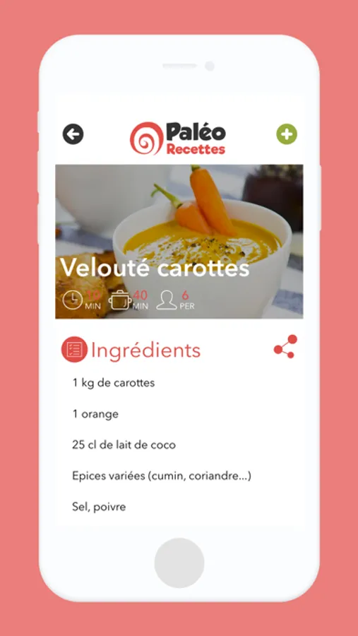 - Toutes les recettes sont EMBARQUÉES sur votre iPhone disponibles à tout moment sans connexion.