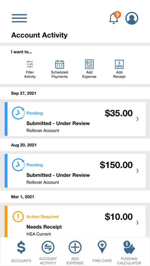 ∙ Drill into claim transactions for your HRA and FSA accounts
