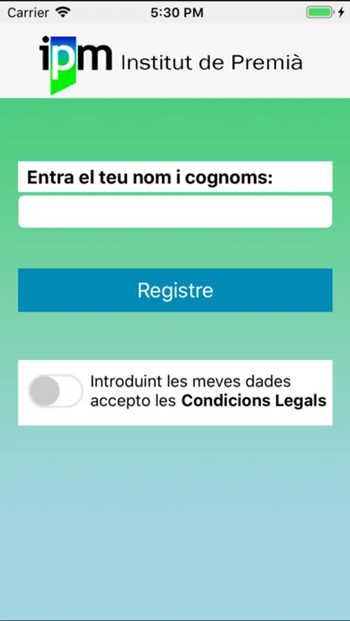 Sistema de comunicats de l'Institut Premià de Mar. L'aplicació permet una comunicació directa entre el centre i els seus alumnes o pares dels alumnes. Consta d'una primera plana de registre on s'identifica l'usuari. A continuació apareix un menú amb diverses opcions: secció de comunicats enviats per l'escola -ja siguin comunicats generals o personalitzats-, secció "L'institut" amb accés directe a la pàgina web del centre, sección "Pagaments" on realitzar els pagaments a través de TPV, "Autoritzacions" on consultar documents i autoritzacions, dades de contacte i secció "AFA".