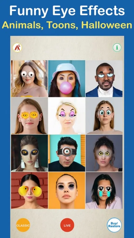 App uses face detection with camera to give you live preview of the effect it will create. There are many options to choose from.