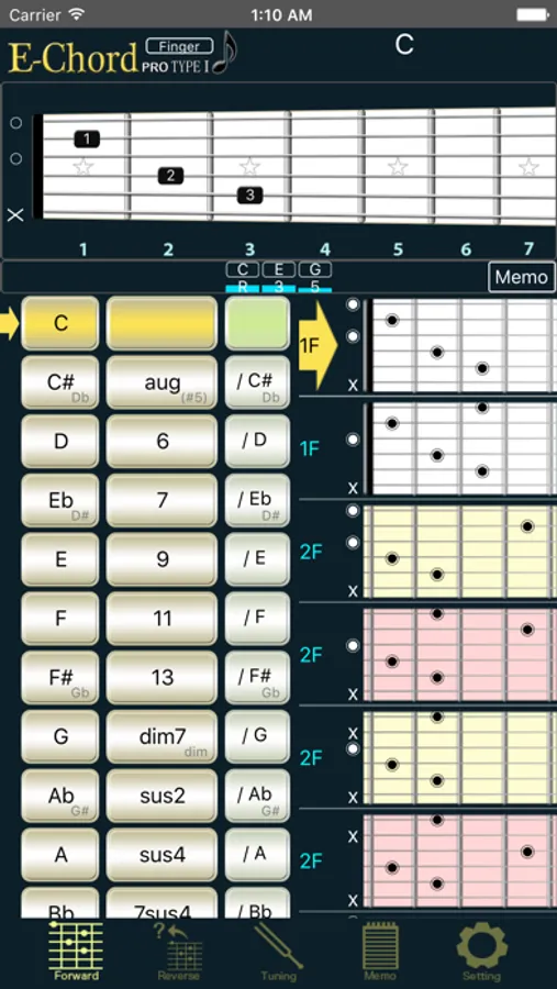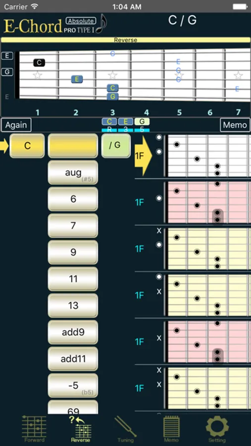 In the same way, chord names can be determined from finger position (reverse lookup). Please try it out!