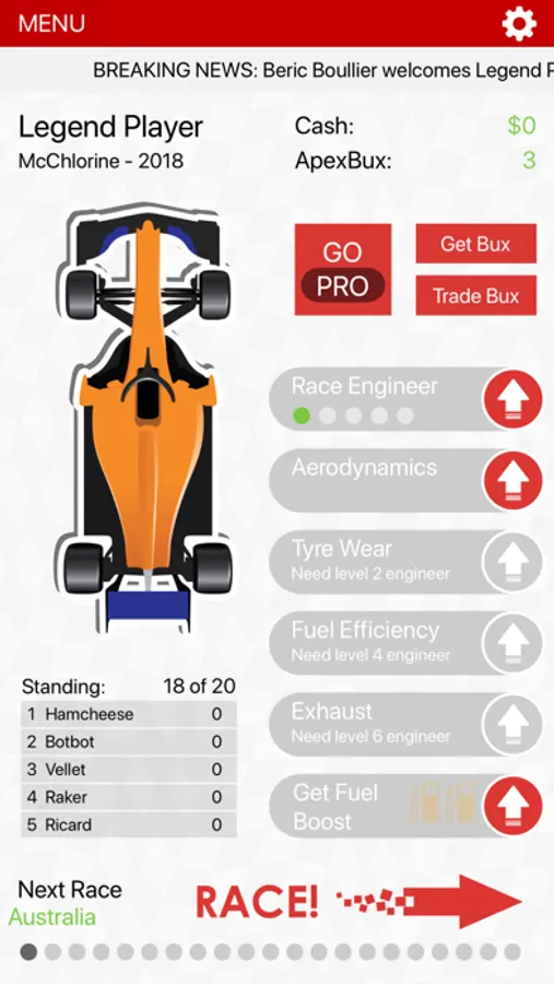 Formula racing fan looking for something a little different? APEX Race Manager is for you - it's an insanely addictive, unique simulation, strategy game where you visit all 21 rounds of the 2019 APEX Race Manager season.