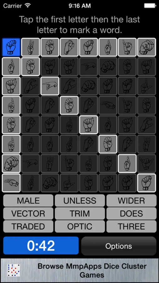 ASL WORD SEARCH is a classic game of word search to help you learn American Sign Language fingerspelling. Rather than using letters on the word search grid, this app use ASL fingerspelling symbols.