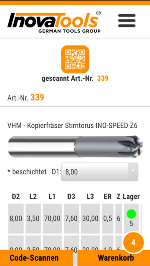 The InovaTools QR-Code Reader helps bridge the gap between the tools catalogue and the online tools offered in the INOSHOP, INOCUT cutting data and INOTECH data sheets.