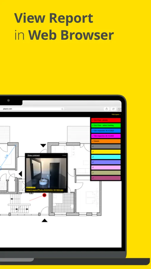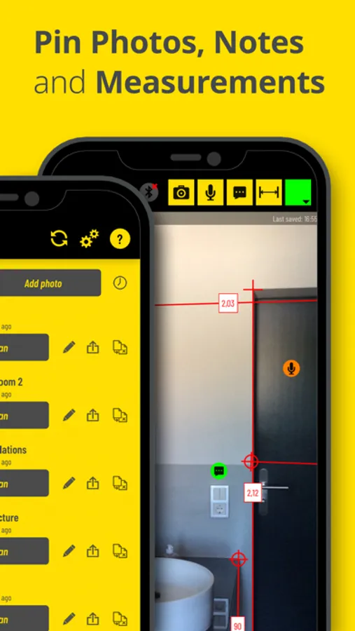 Take pictures and locate them on your floor plans - including the viewing direction. Place audio and text comments right where they need to be.