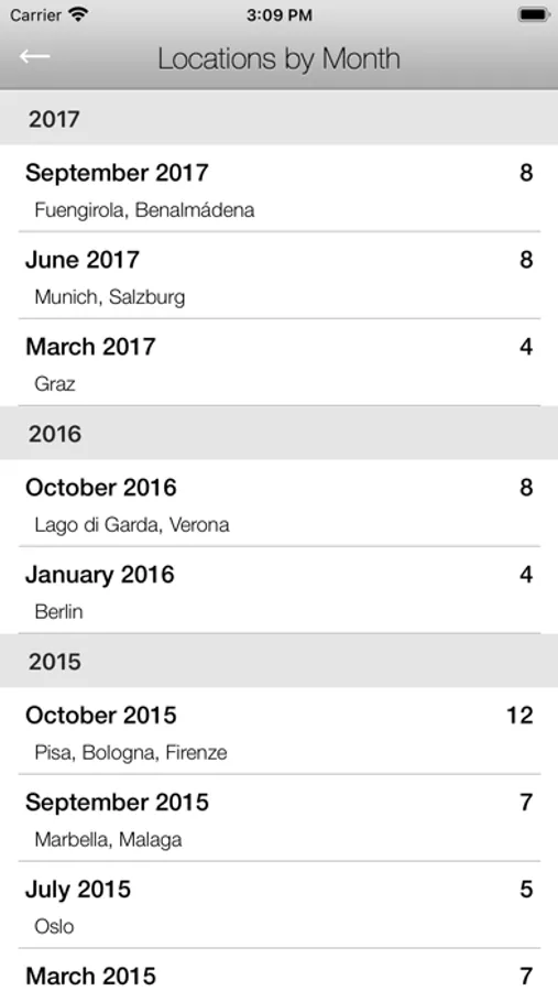 • Statistics: you will know how many locations you have visited, together with number of trips and different years, months and days when these locations were recorded