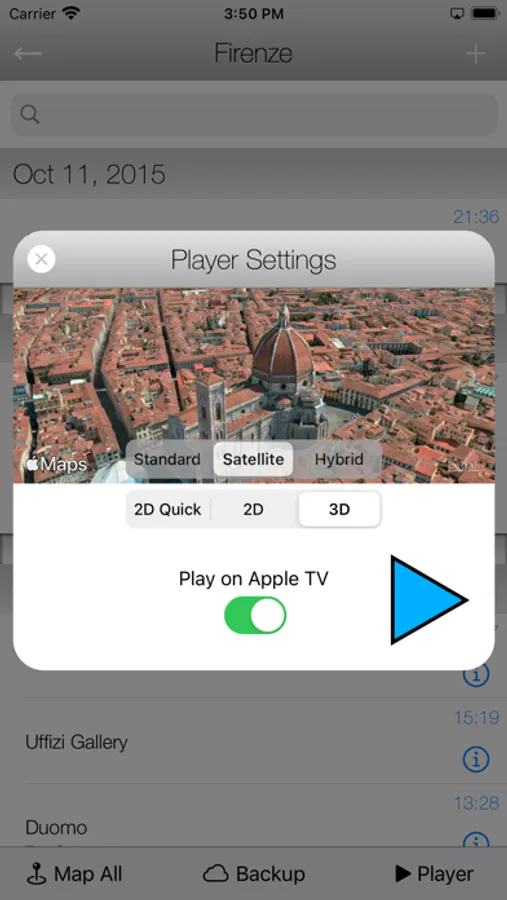 Locations are grouped in trips and 2D/3D flyovers can be generated easily.