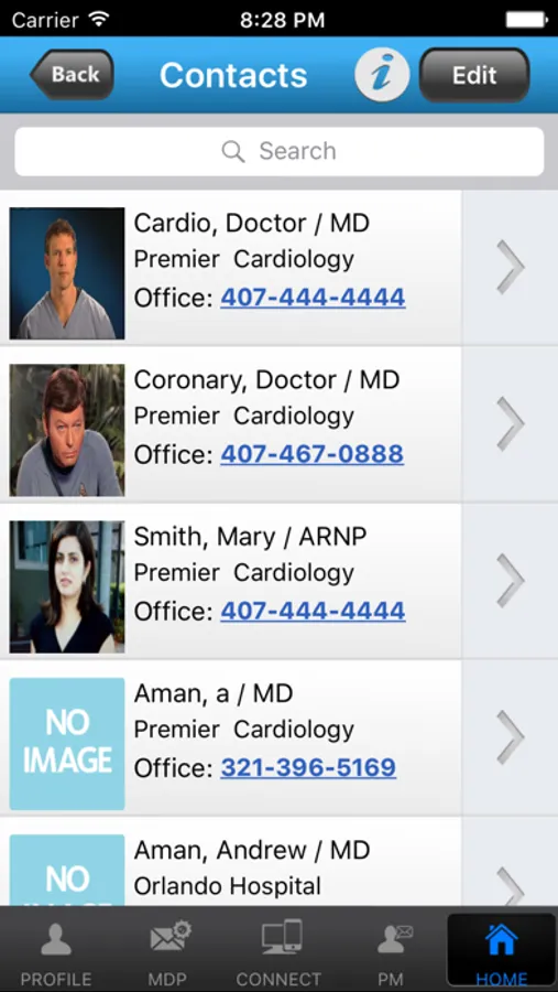Phone Directory: Access phone directory of all affiliated physician Offices and Hospitals and make calls.
