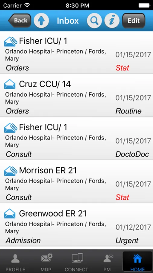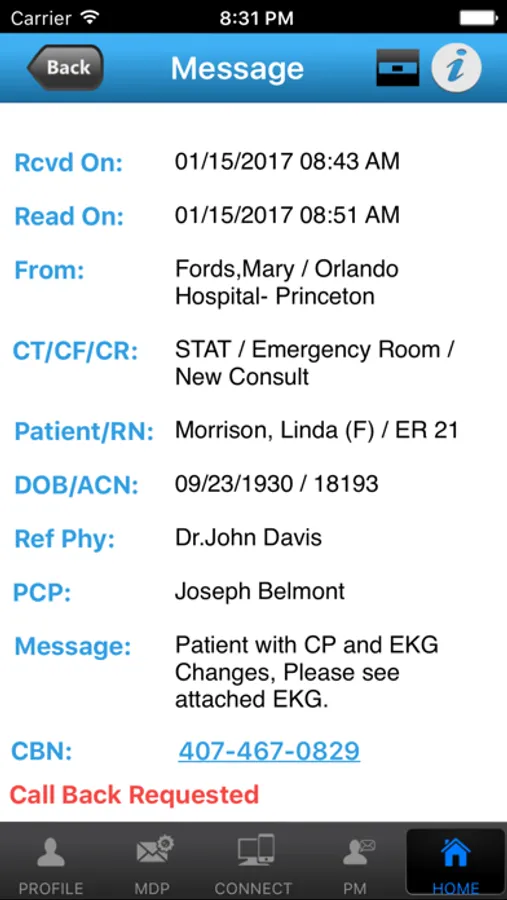 Patient Message Board: Info pertaining to patients like patient’s location (in OR, in Dialysis, in X-Ray etc.), NPO status etc. can be posted and viewed in real time.
