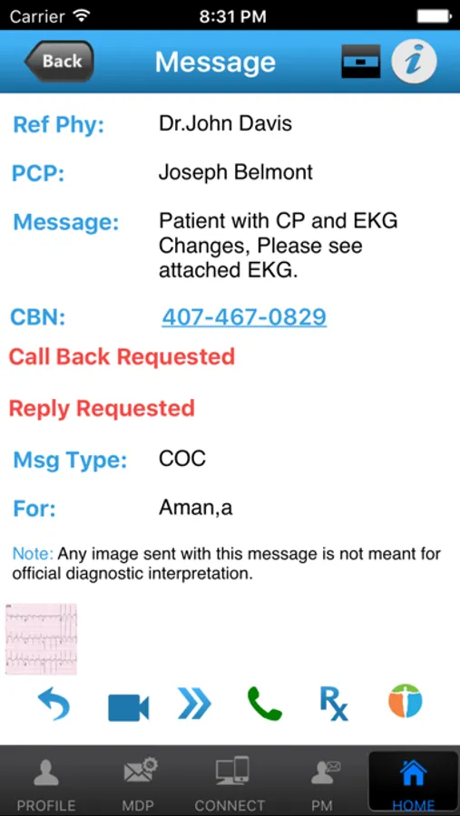 Patient Messaging: To communicate with patients (by Text, Text to Speech or VOIP Call) without revealing your cell number.