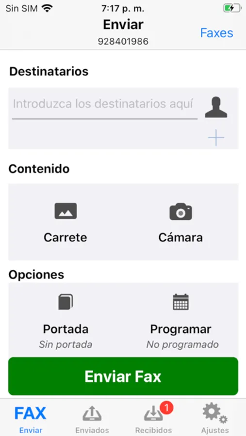 * Crear faxes tomando una foto o utilizando el carrete.